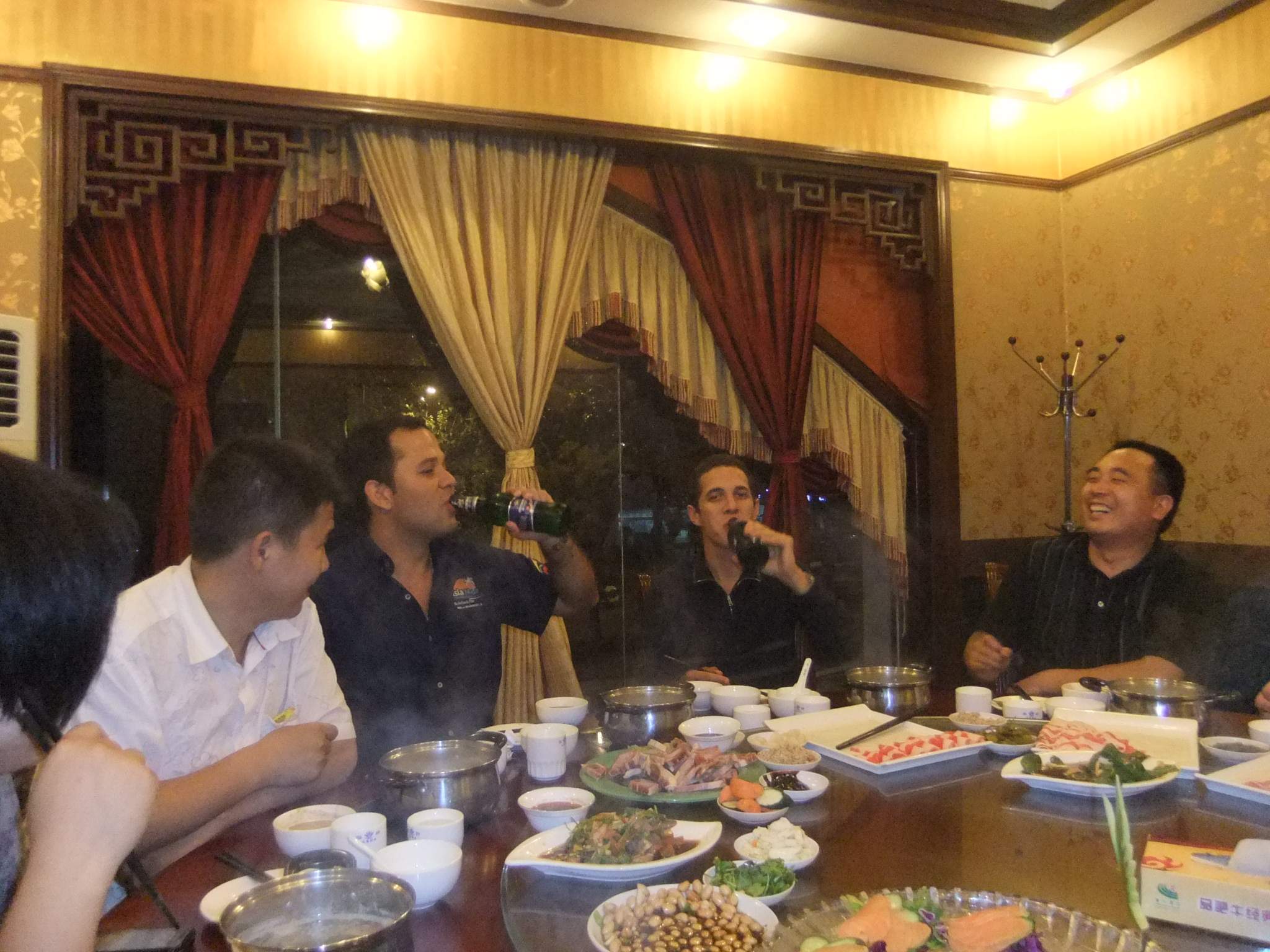??? 實(shí)驗(yàn)期間,物料篩分效果良好、篩分質(zhì)量穩(wěn)定,得到了來(lái)自大洋彼岸的朋友的稱(chēng)贊。晚上我們公司的工作人員和委內(nèi)瑞拉的朋友暢飲狂歡,外國(guó)朋友學(xué)會(huì)了中國(guó)的“干杯”,而我們也知道了“沙路”(下圖,委內(nèi)瑞拉客戶(hù)此行我公司很滿(mǎn)意,迫不及待的“沙路”)